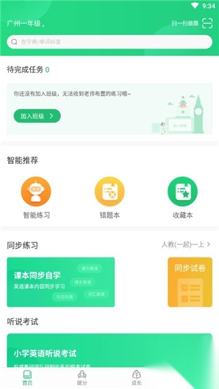 2、进入app首页,可以加入班级,选择智能练习,同步训练