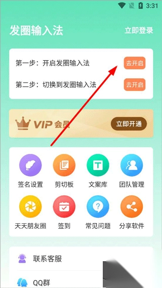 1. 完成安装后,打开app,在主页点击开启发圈输入法,随后切换输入法。