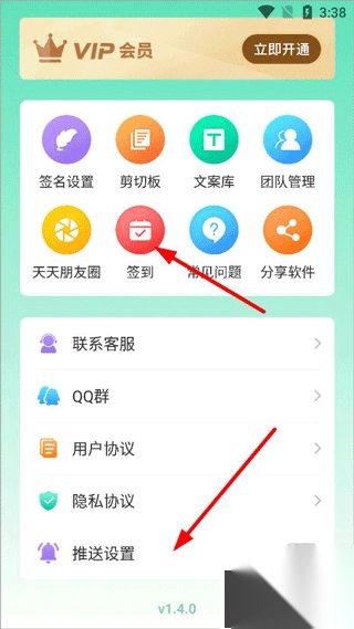 2、登录成功后,点击签名设置,可输入签名,且签名会自动加在朋友圈文案最后,可有效防止折叠;