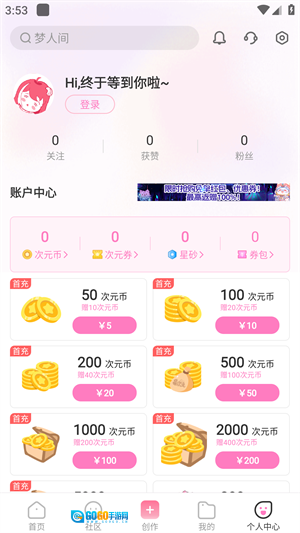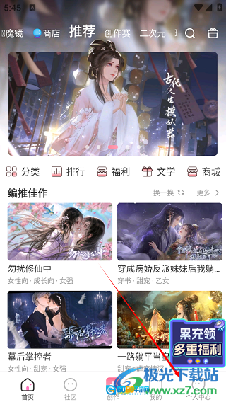 1. 来到易次元主页面,在这里能够看到许多优质作品。