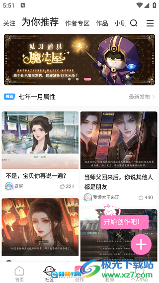 5、你还能够点击右下角的“+”按钮,从而参与创作。