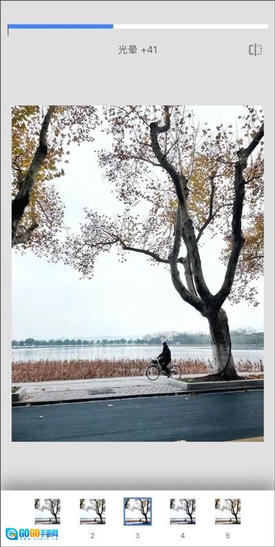 在照片上添加“魅力光晕”滤镜。把发光数值设置为41及以上,同时将饱和度与暖色调均设为0 。