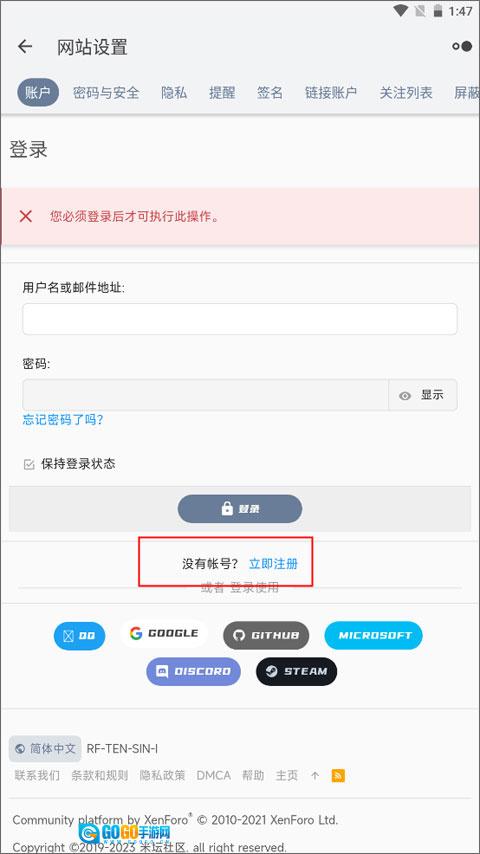 2、此时页面跳转至网站设置界面,新用户需进行注册,点击下方的“立即注册”。