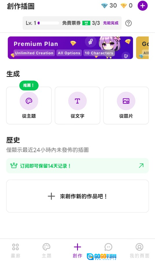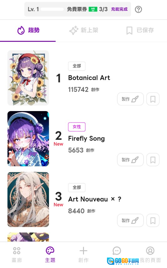 1、在【主题】板块里,我们能够挑选一个已训练完成的AI模型,借助该AI模型来辅助创作属于自己的角色(每次需消耗1张免费票或者30钻石)