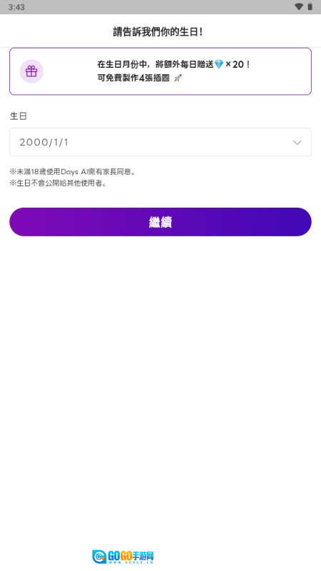 3、完成之后便开始注册。挑选你的性别以及生日。