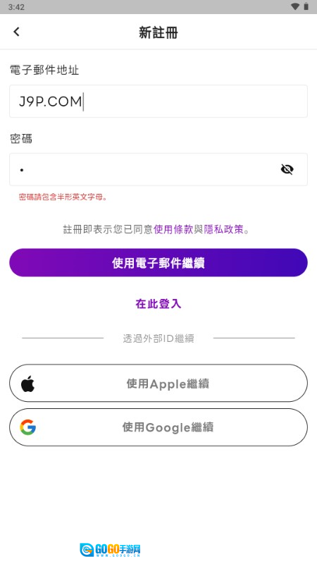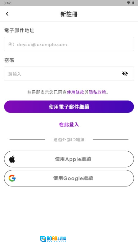 1. 挑选登录方式,可选择苹果账号、谷歌账号以及邮箱账号进行登录。