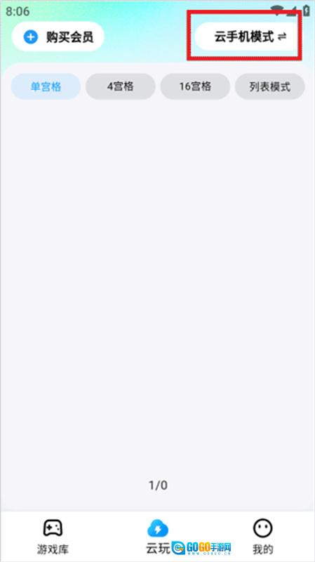 打开云游侠App,点击底部导航栏的“云玩”按钮。在云玩界面右上角,选择“游戏模式”并切换至“云手机模式”。