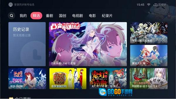 首先,来看看TV版的界面。当前,顶部导航仅有七个选项,分别是[我的 精选 番剧 国创 电视剧 电影 纪录片] ,个人关注的UP主视频,暂时没办法直接通过TV客户端观看。