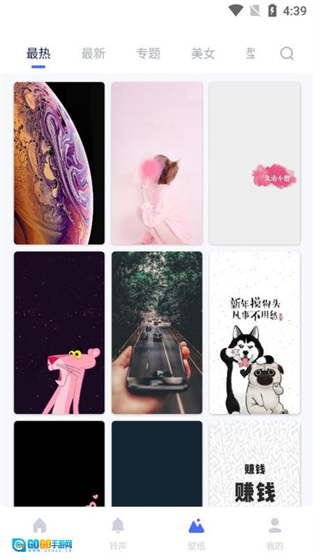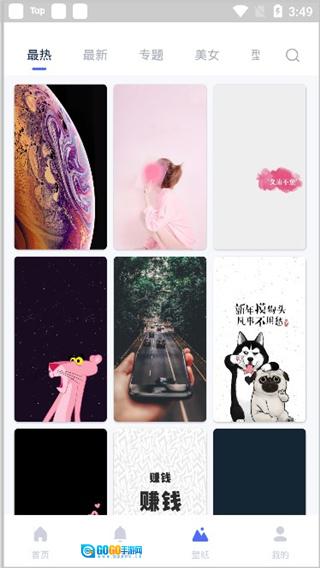4、“壁纸”板块同样划分了最新、最热、专题、美女等类别。