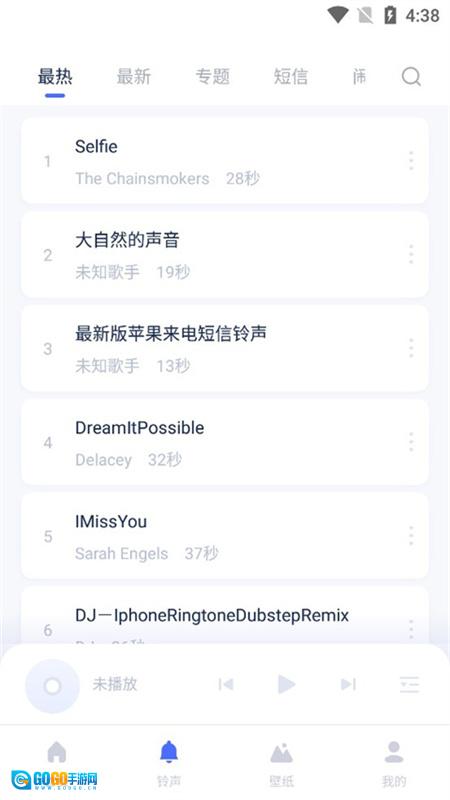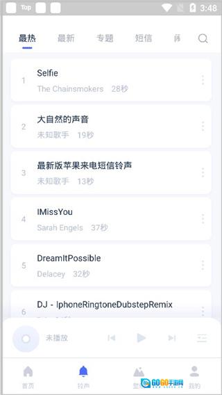 3、“铃声”板块同样细分为:最热、最新、专题、短信等类别。