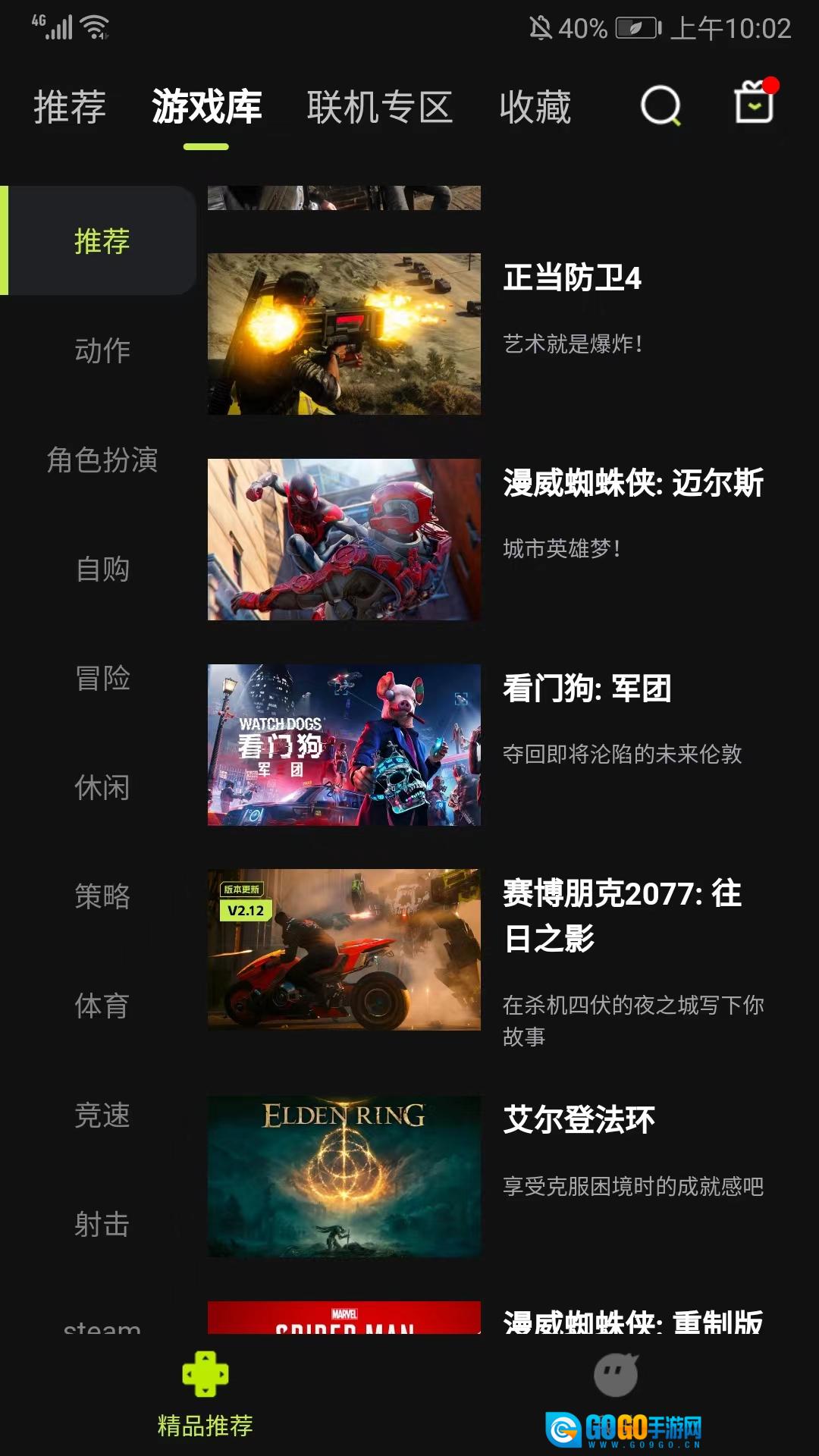 2、游戏库内包含动作、角色扮演、自购、冒险、休闲、策略、体育、竞速等多种丰富的游戏类型。玩家能够依据自身喜好自主挑选并体验,在此以【正当防卫4】作为示例。