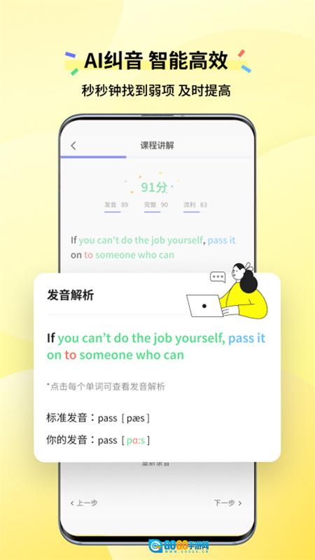 2. 智能评分:运用国际前沿的AI发音识别技术,能够清晰识别多种发音口音。