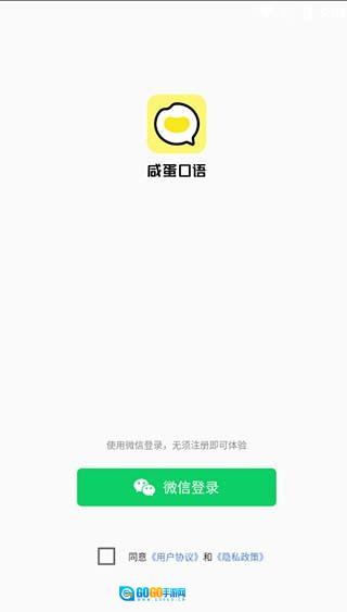 1. 开启咸蛋英语口语,进入登录界面(若选择微信登录,无需进行注册)。