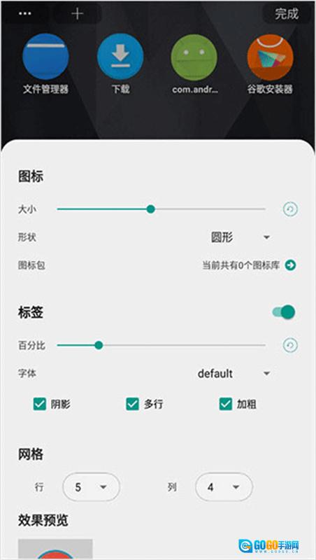 5、可自定义主屏幕的行列布局,同时提供实时预览功能,还支持隐藏页面。