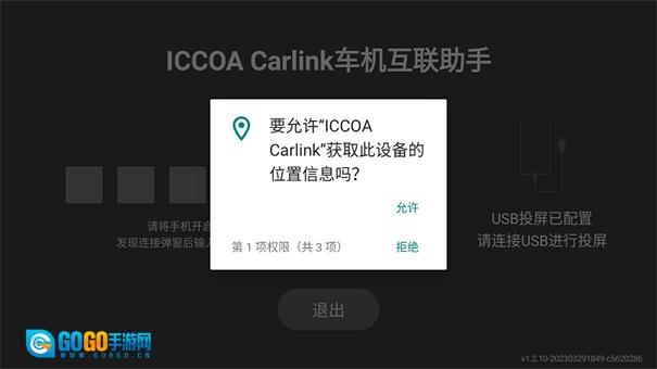 3、轻点车机端的【ICCOA Carlink】图标,这时手机会弹出框体提示进行连接。