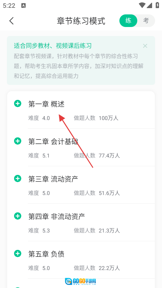 3、于章节练习列表里,挑选想要练习的章节,即可进入该章节的题目练习界面。