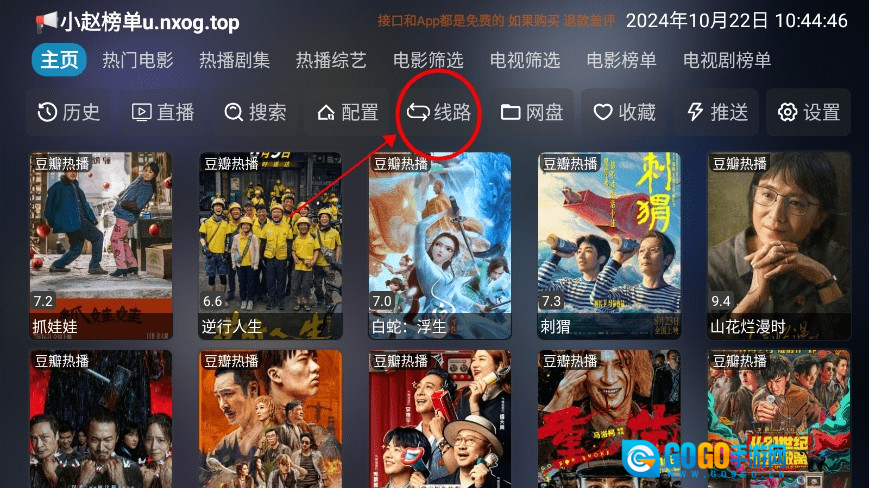 1、打开七星影仓电视盒子版,点击界面中间的线路。