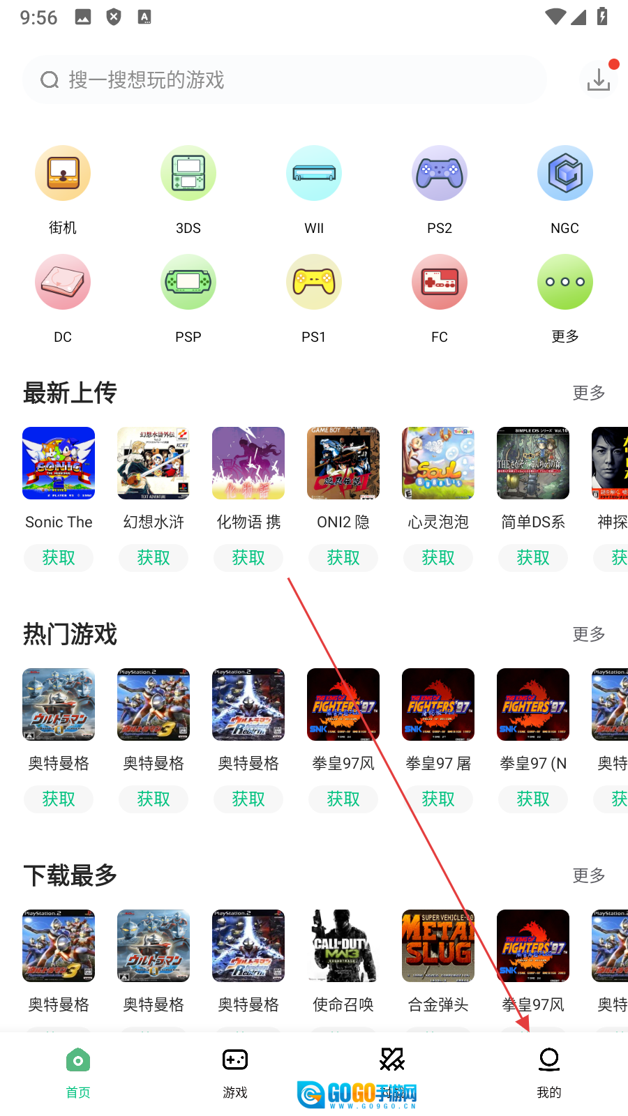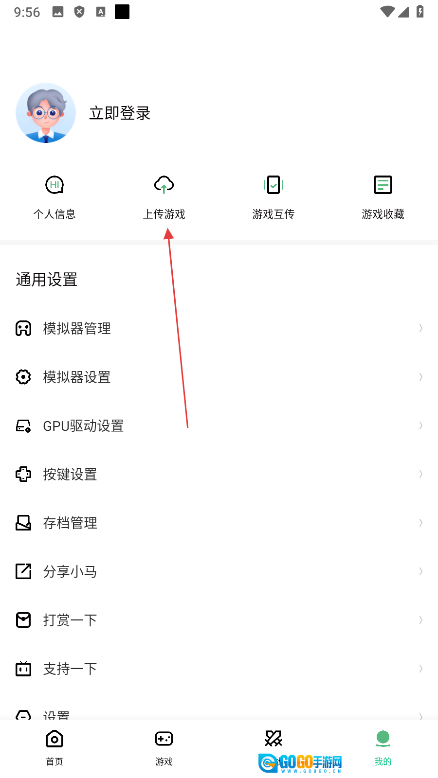 2、在个人中心页面,点击【上传游戏】,进入上传游戏选择页面。