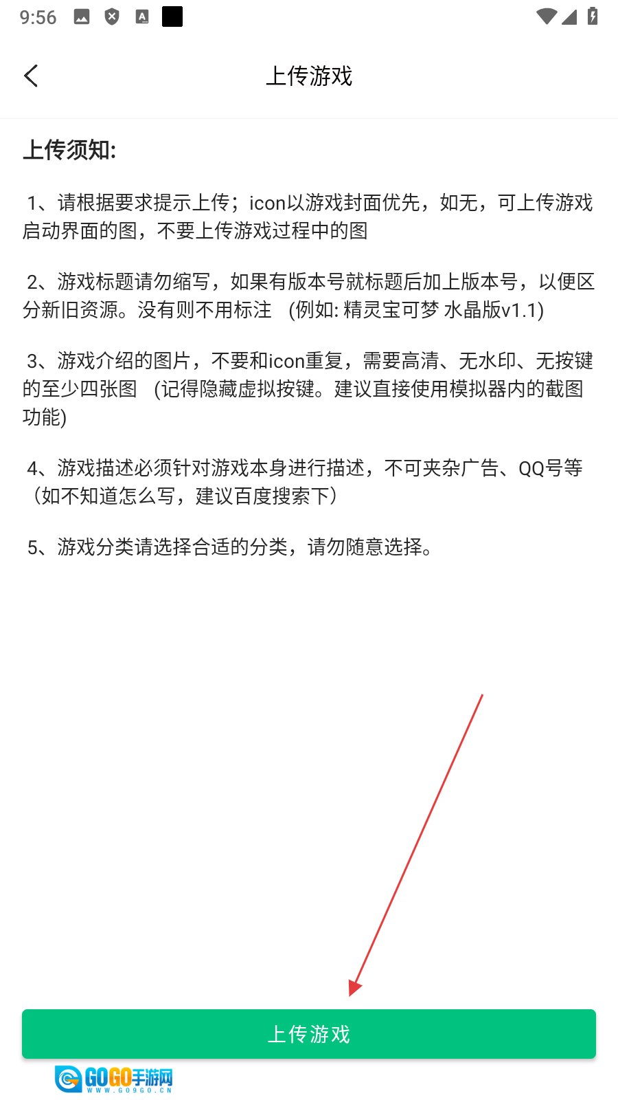 4、在上传须知页面,点击【上传游戏】,即可进行游戏上传操作。