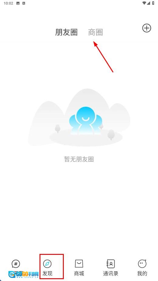 1、点击底部【发现-功能按钮】,进入发现页面后点击【商圈-标签】。