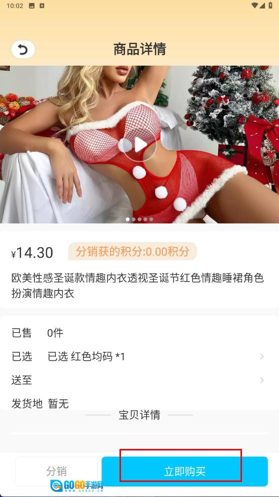 4、在商品列表点击感兴趣的商品条目,进入商品详情页后点击【立即购买-功能按钮】。