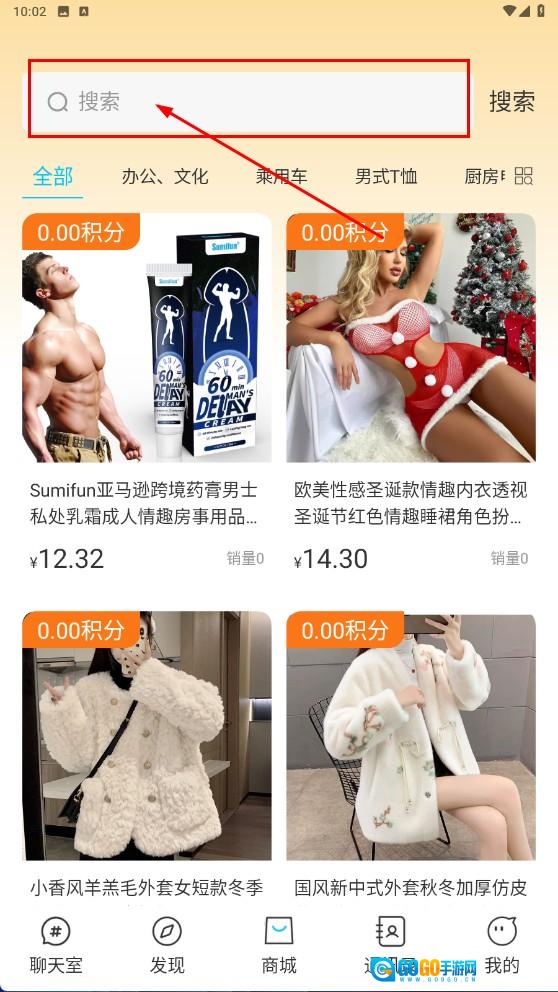 3、在商品页面顶部搜索栏输入关键词,点击【搜索-功能按钮】,查看商品列表。