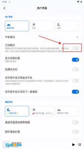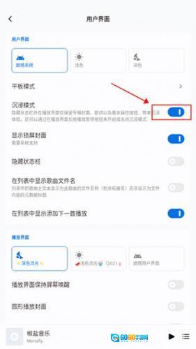于用户界面的设置里,寻得沉浸模式,点击其后方的开关按钮,具体位置如图所示。