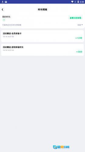 2. 接着点击【查看当前套餐】,进入时长套餐明细页面后,点击【开会员得时长】。