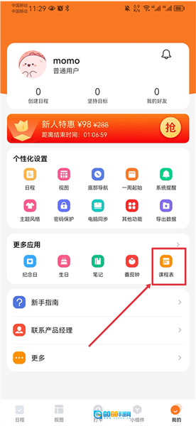 1. 开启App,于“我的”界面里点击“课程表”
