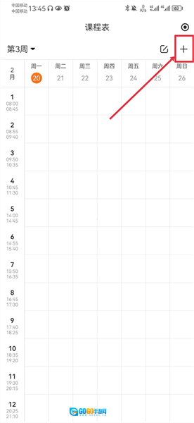 3. 来到课程表页面,轻点右上角的“+”按钮,接着点击某一空白表格,从而进入添加界面。
