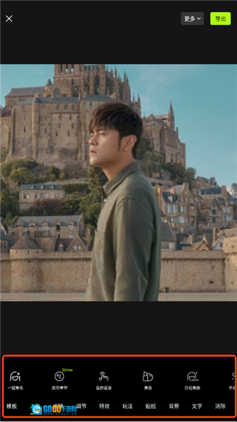 3. 挑选照片后,会进入图片编辑页面,页面下方设有各类修图功能,依据美化需求进行相应设置就行。
