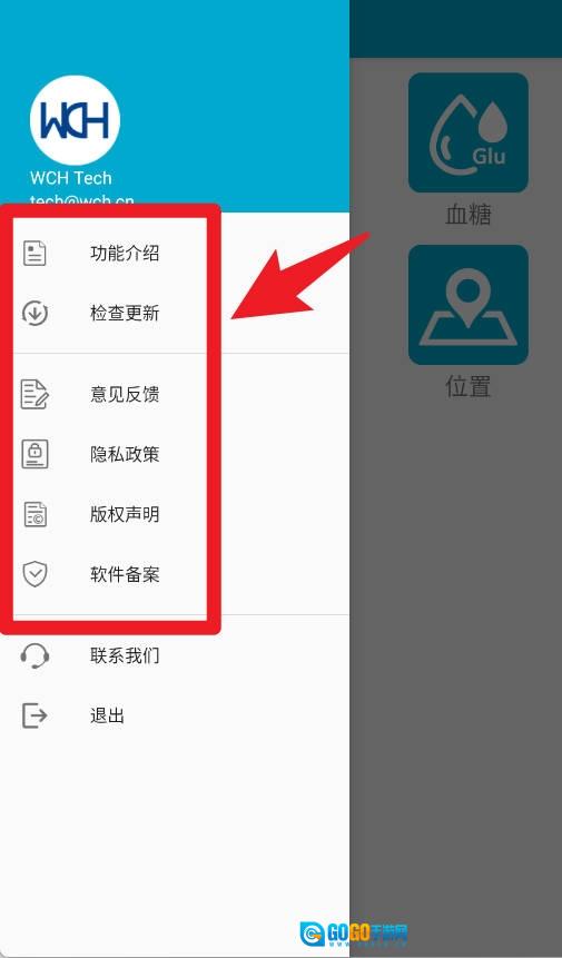 5、侧边菜单中包含功能介绍、检查更新、意见反馈、隐私政策、版权声明及软件备案,确保使用过程清晰透明。