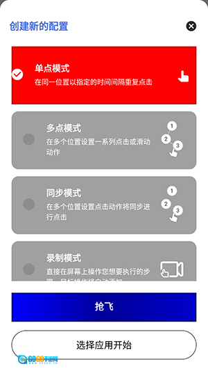 2、同样选择点击模式,点击下方的“开始”按钮即可。
