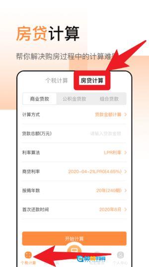 1、点击首页底部个税计算按钮,切换顶部标签到房贷计算,可进入房贷计算页面,快速计算每月还款金额。