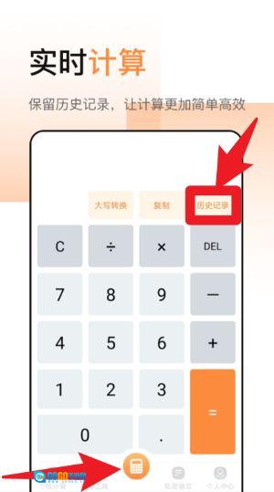 4、在底部点击计算器图标进入主计算界面,支持实时运算与历史记录功能,方便随时查看与复制计算结果。