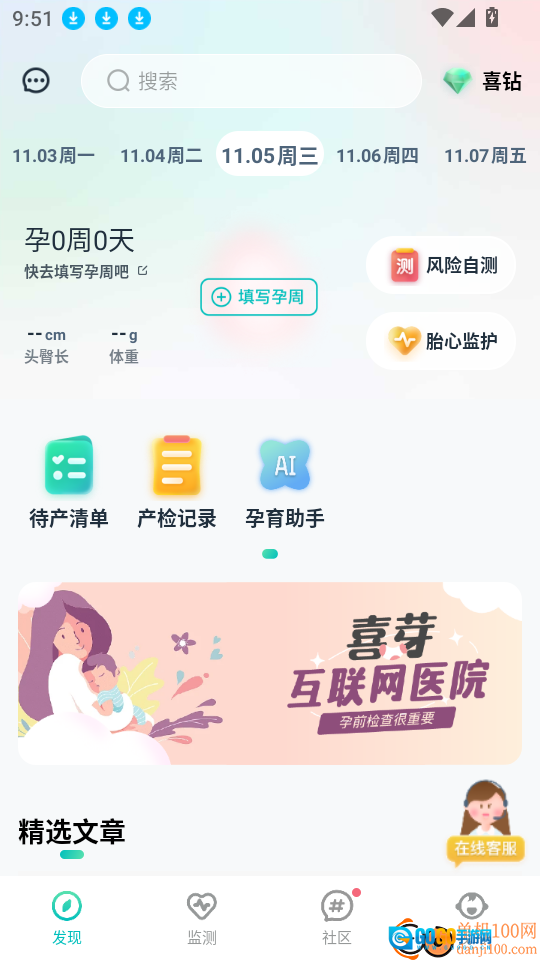 软件设有妊娠风险自测功能,用户能够实时自行检测自身的妊娠风险,轻松完成风险自测。
