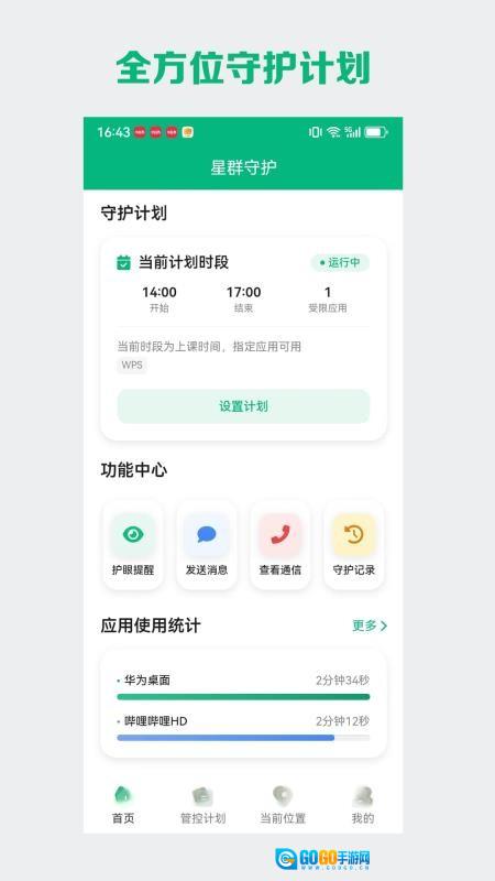 星群守护是一款助力家长对孩子电子设备进行防沉迷管理的工具。借助这款软件,家长今后能够直接对孩子的电子设备开展各类上网监控、上网统计以及应用管理等操作。如此一来,家长便能知晓孩子每日电子设备的使用数据,进而制定相应的上网方案,引导孩子按方案上网,从而有效把控孩子上网时间,防止孩子长时间沉迷网络,切实达成防沉迷目的。 不仅如此,星群守护还有助于孩子养成健康自律的习惯,促使孩子学会自律使用电子设备,让孩子能够自主掌控每日电子设备上网时长,实现自我管理,助力孩子形成良好的自律管理能力。