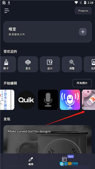 1. 开启本站的LightX相片编辑器高级会员版,点击进入首页,从众多图片里挑选一张你想编辑的图片。