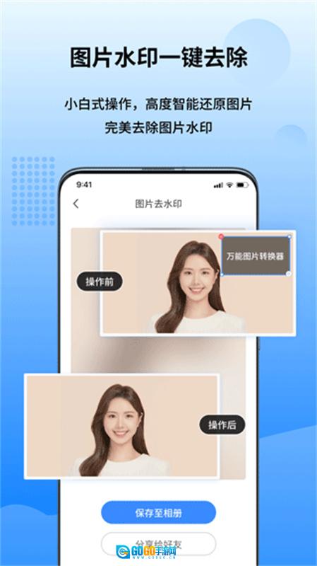 一键框选,智能清除图片水印,彻底干净,毫无残留。