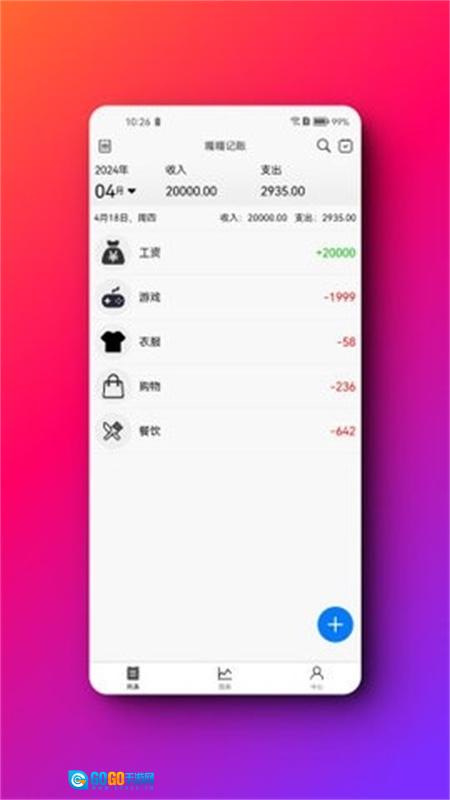 3、报表统计:提供多种报表和图表,帮助用户了解自己的财务情况。