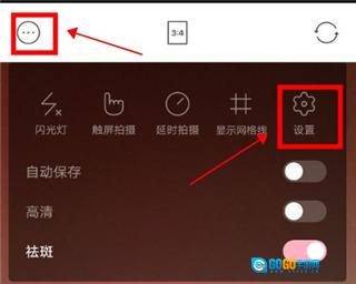 1、在拍照界面,点击左上角带有圆圈的三个点。