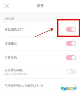 2、接着点击设置选项,进入设置页面后,能够看到甜盐相机水印,只需直接点击,即可将其关闭。