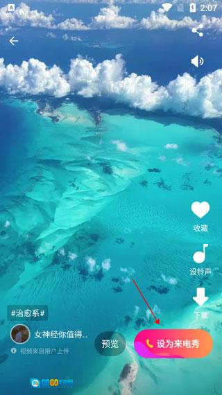 5、点击喜欢的主题并打开,在右下角既能够直接选择“设为来电秀”,也可以先进行收藏。