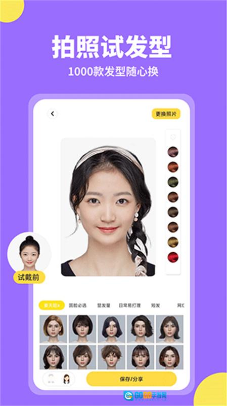 - 拍照或选择照片,一张正脸照即可尝试1000款发型,男士发型、女士发型都有,需要换发型、测试发型是否适合自己,首页点击图片即可使用试发型功能。