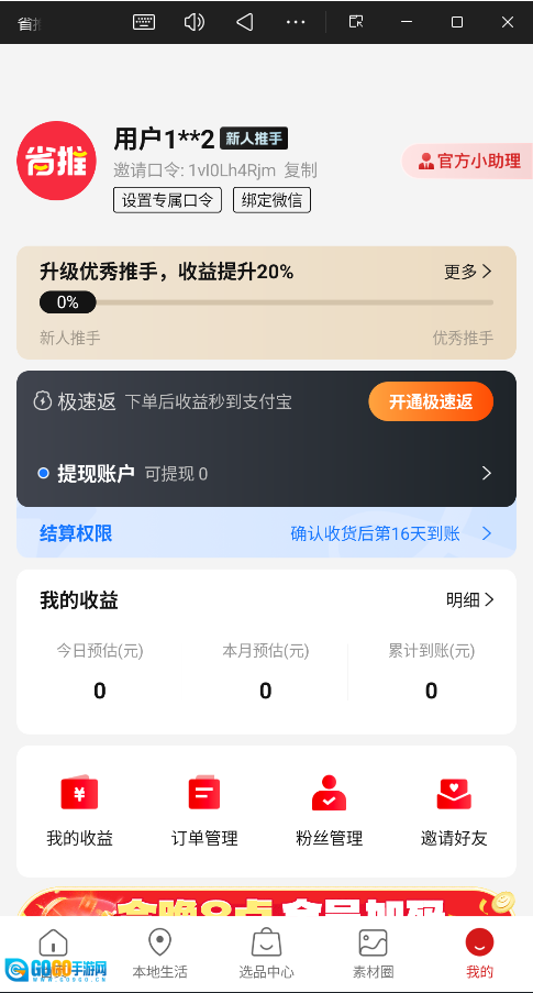 收益查看:在此处可查看你的“今日预估”佣金、“本月预估”佣金以及“累计到账”佣金。