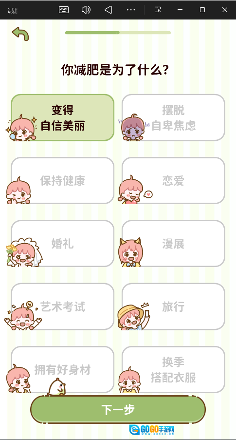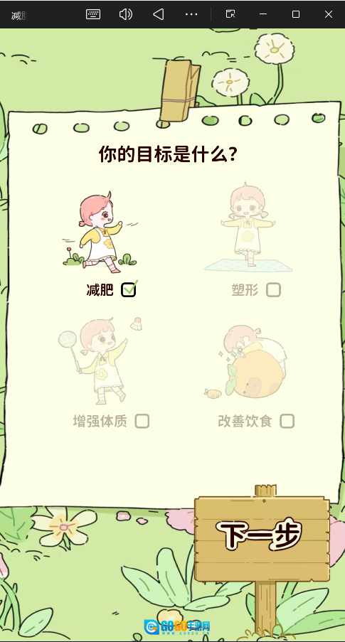 2. 确定目标:挑选你主要的追求方向,例如 “减肥”“塑形” 亦或是 “增强体质” 。