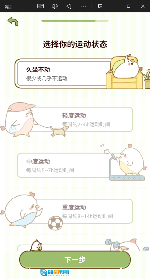 运动状态表现为:诸如“久坐不动”或者“轻度运动”之类。