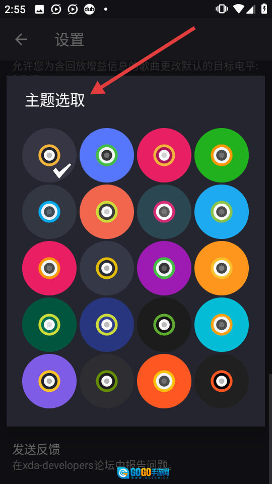3、于设置界面中,点击【主题】选项,随即进入【主题选取】界面。