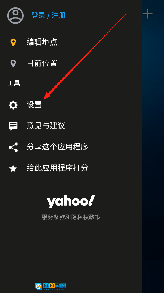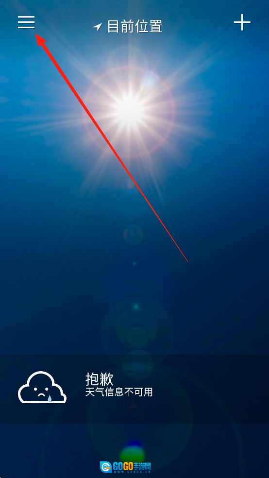 1. 开启雅虎天气App,轻点左上角的功能菜单。