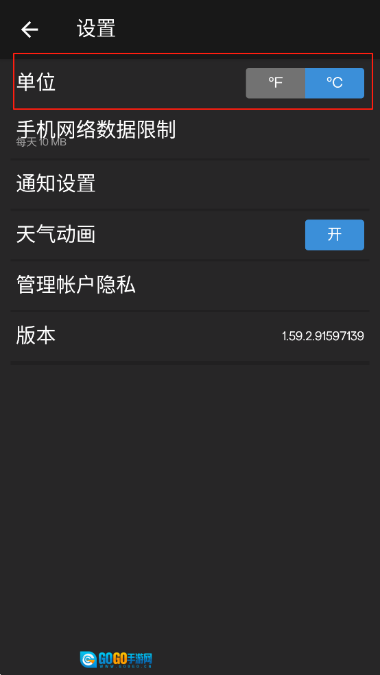 3、接下来只需修改天气单位就行。